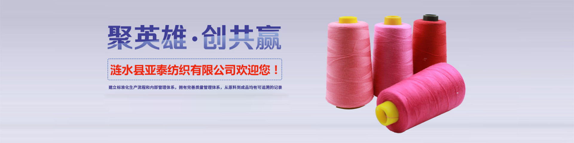 漣水縣亞泰紡織有限公司位于江蘇漣水縣,公司專業(yè)生產(chǎn)各種縫制線、織帶織布線、漁網(wǎng)線、輪胎線、風箏線等產(chǎn)品,廣泛應用于服裝、鞋帽、皮革、箱包、家紡、帳篷、漁業(yè)、勞保用品、運動用品、特種行業(yè),材質(zhì)有滌綸、錦綸、氨綸等,滿足各行各業(yè)對線的需求。公司始創(chuàng)于1998年,擁有整套先進的染色制線設備,專業(yè)的技術管理人員,先進的生產(chǎn)工藝。歡迎您光臨指導、洽談合作!